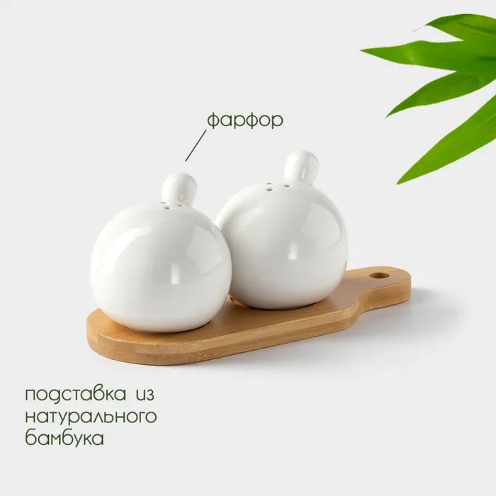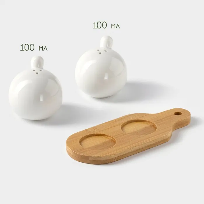 Набор для специй на бамбуковой подставке BellaTenero «Шарики», 2 предмета: солонка 100 мл, перечница 100 мл, фарфор, белый — Характеристики