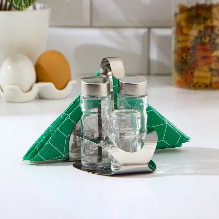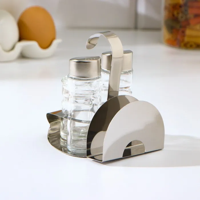 Набор для специй на подставке — это небольшой набор с емкостями для хранения соли, перца, а также других различных приправ. Изделие отличается красивым дизайном. Баночки выполнены из стекла, устойчивого к механическим повреждениям и перепадам температур, а прозрачные стенки емкости для специй позволят видеть количество приправ и их разновидность, поэтому вы никогда не ошибетесь с выбором. Благодаря подставке их удобно хранить и переставлять, не занимает много места выглядят стильно и практично.