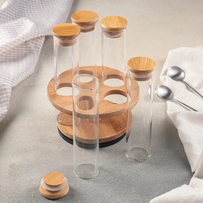 Набор для специй на подставке «Эко», 100 мл, 4×14 см, 5 шт., стекло — Характеристики