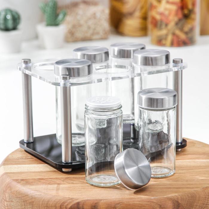 Набор для специй на подставке «Хай-тек», 19×21.5 см, 90 мл, 4×9.5 см, 6 шт. — Характеристики