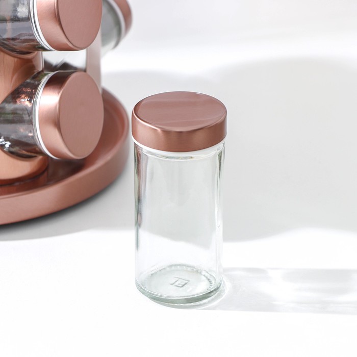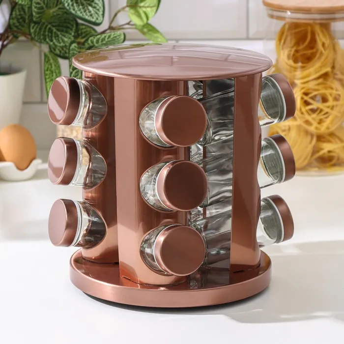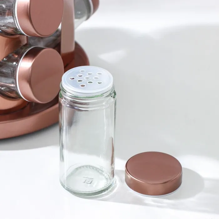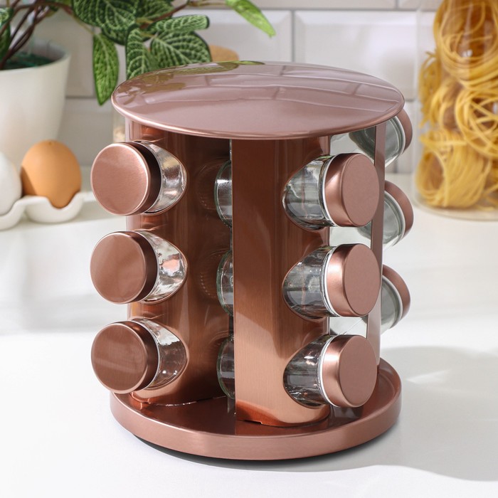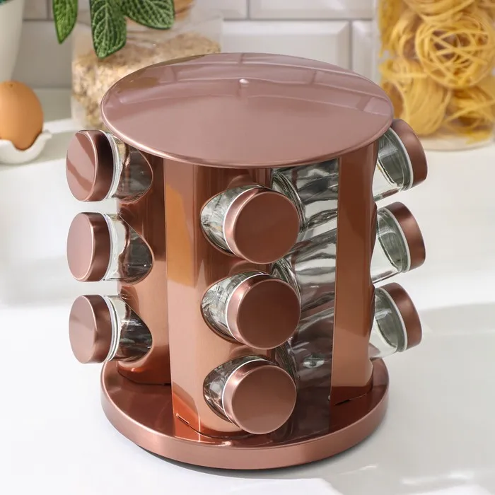 Набор для специй на подставке «Профи», 100 мл, 19×20 см, 12 шт., стекло, цвет бронзовый — Характеристики