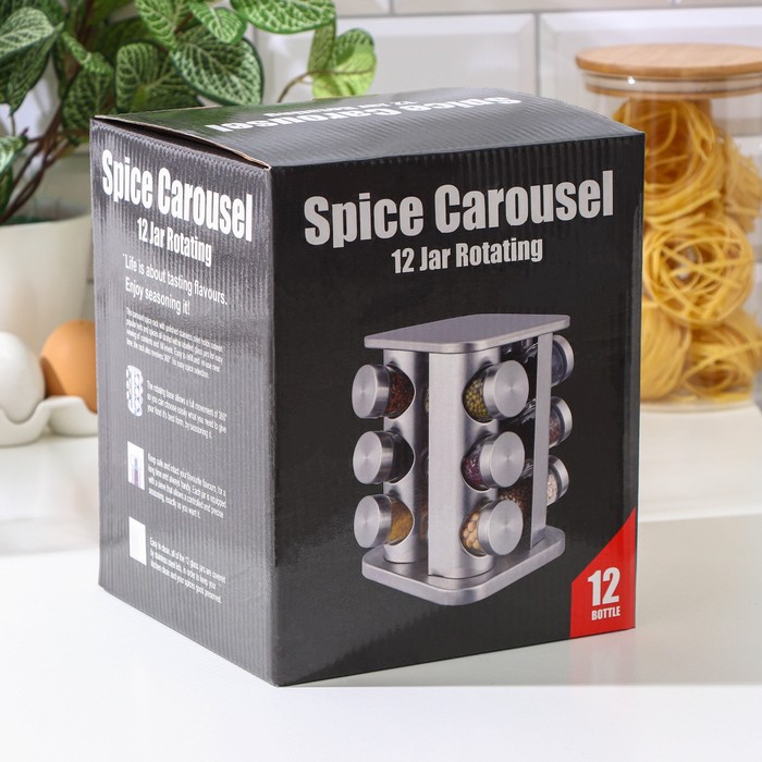 - В наборе 12 баночек для специй на подставке.