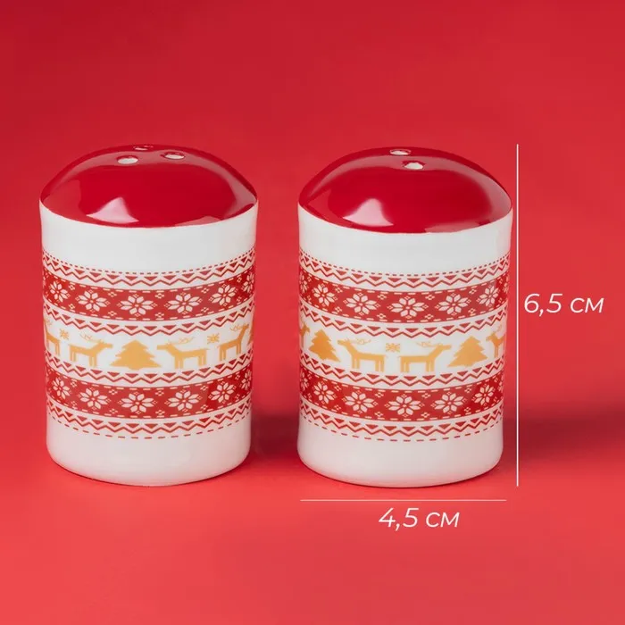 Набор для специй новогодний Доляна «Финский лес», солонка 50 мл, перечница 50 мл, керамика, белый — Характеристики