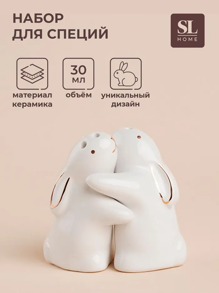 Набор для специй SL Home «Пасхальные кролики», солонка 30 мл, перечница 30 мл, керамика, белый — Характеристики