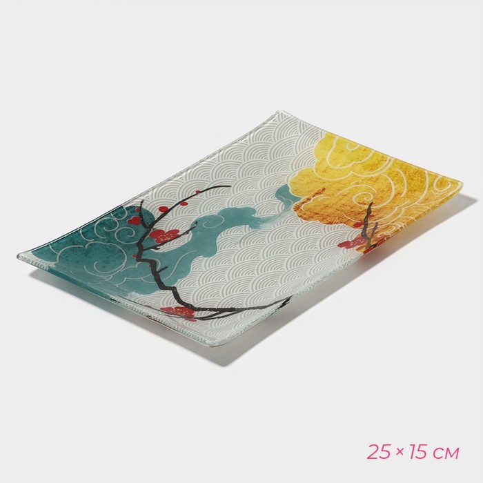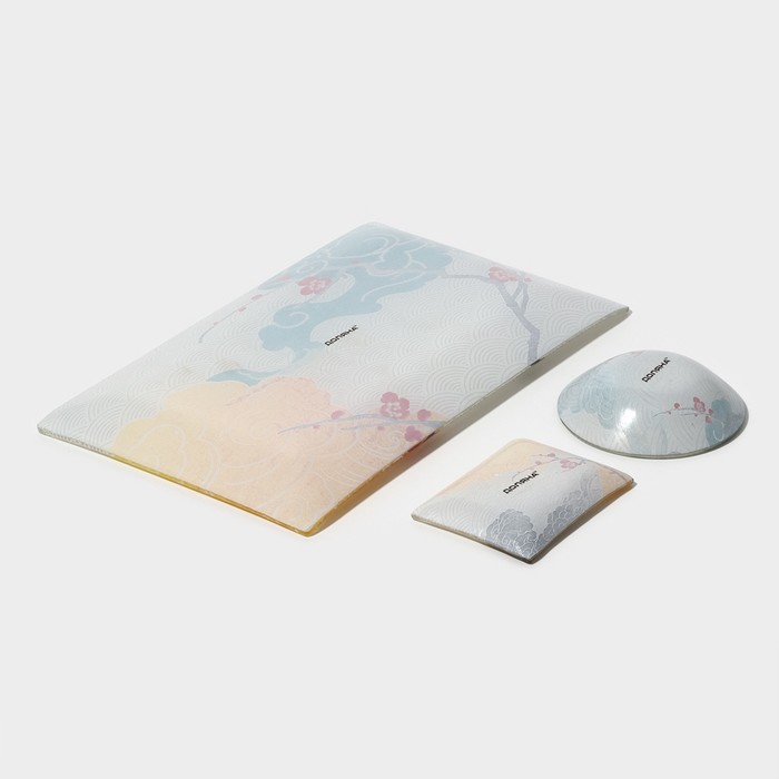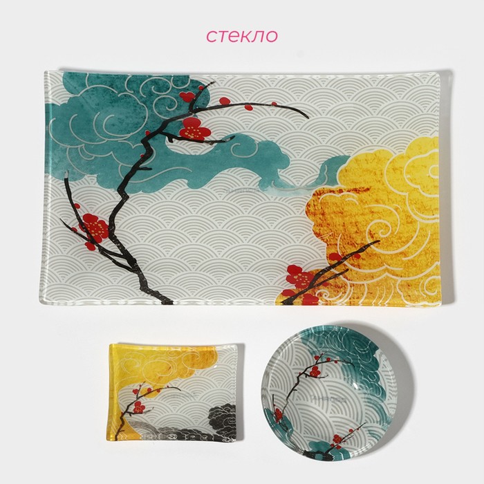 Набор для суши Доляна «Абстракция», 3 предмета: соусники 8×2 см, 8×6 см, подставка 25×15×2 см, стекло — Характеристики