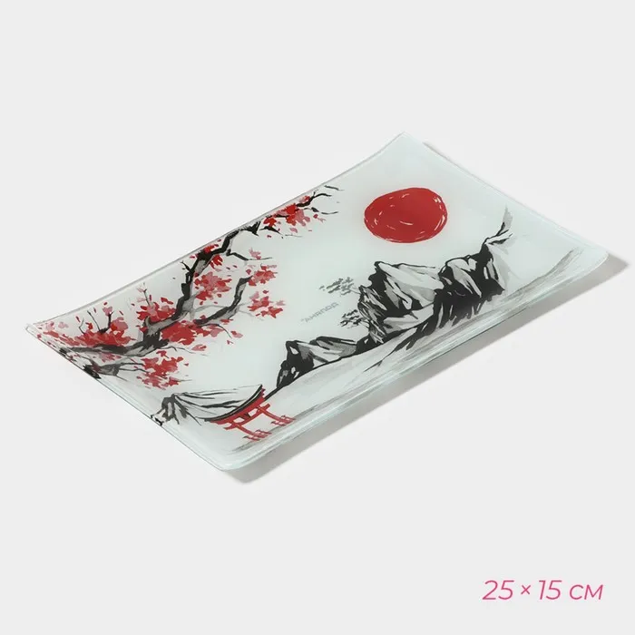 Набор для суши Доляна «Рассвет в горах», 3 предмета: соусники 8×2 см, 8×6 см, подставка 25×15×2 см, стекло — Характеристики