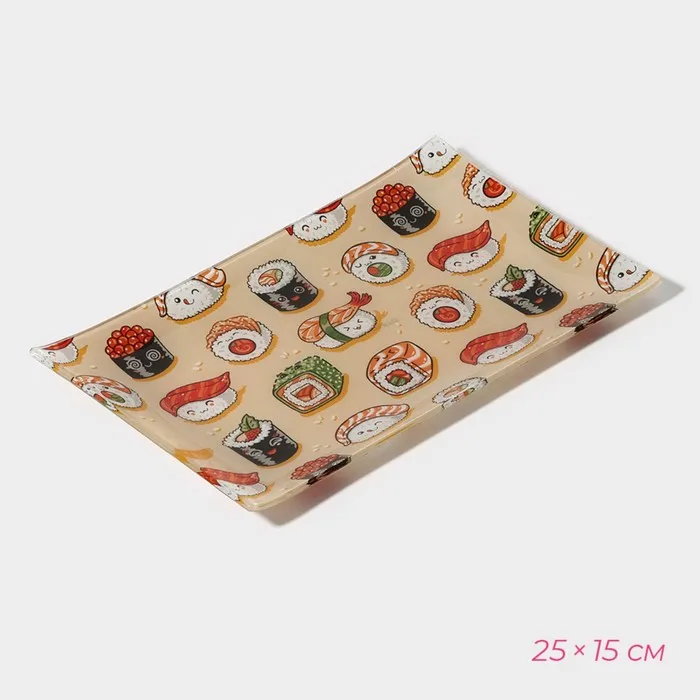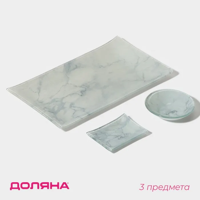 Набор для суши Доляна «Сет», 3 предмета: соусники 8×2 см, 8×6 см, подставка 25×15×2 см, стекло — Характеристики