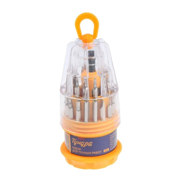 Набор для точных работ ТУНДРА, CrV, держатель с битами, в кейсе, 31 предмет — Характеристики