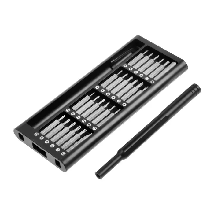 В комплекте есть необходимые шлицы для мелких работ по дому и ремонта электроники. Также металлический футляр с удобным и простым механизмом открывания.