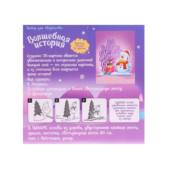 Набор для творчества 3д картина - ночник «Снеговичок» — Характеристики