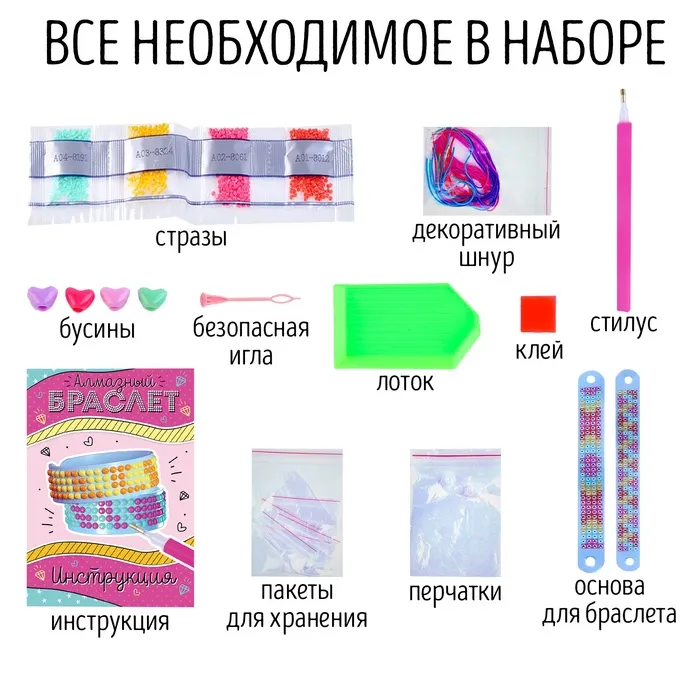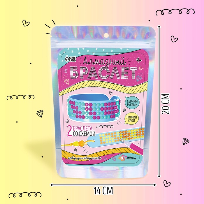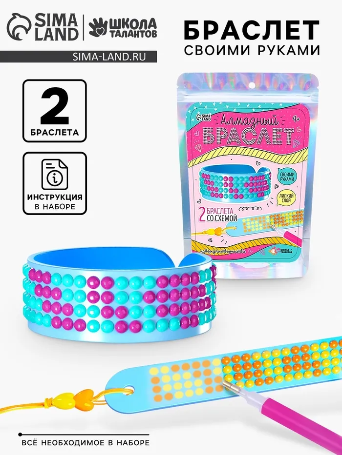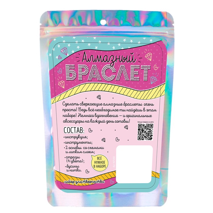 Сделать сверкающие алмазные браслеты очень просто! Ведь всё необходимое вы найдёте в этом наборе! Вам понадобится чуточку вдохновения, и ваши оригинальные аксессуары на каждый день готовы!