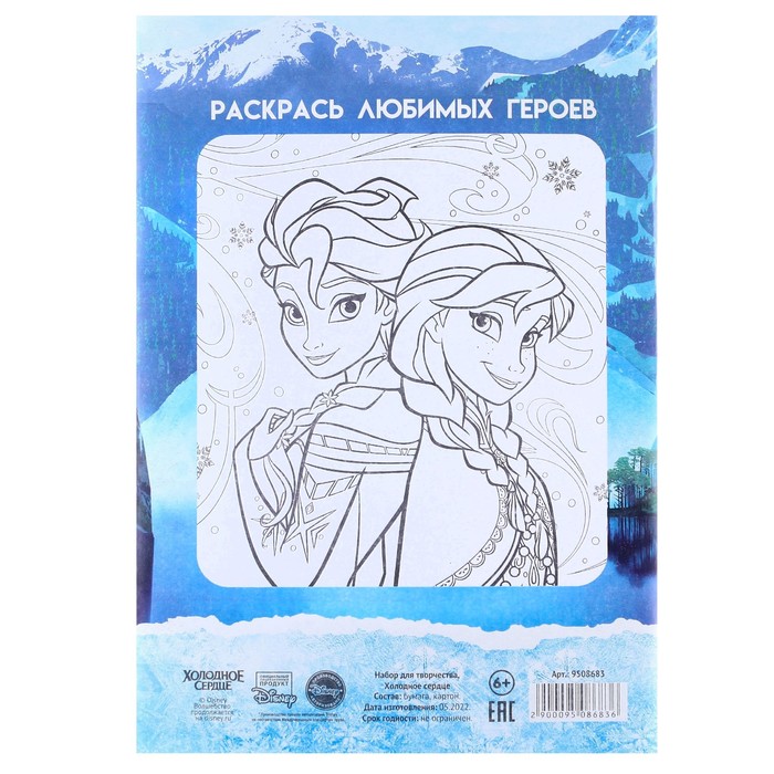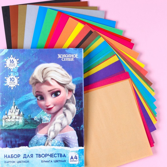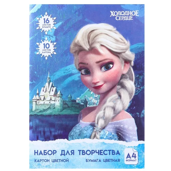 Набор для творчества «Анна и Эльза» А4, цветная бумага двусторонняя 16 листов, цветной картон односторонний 10 листов — Характеристики