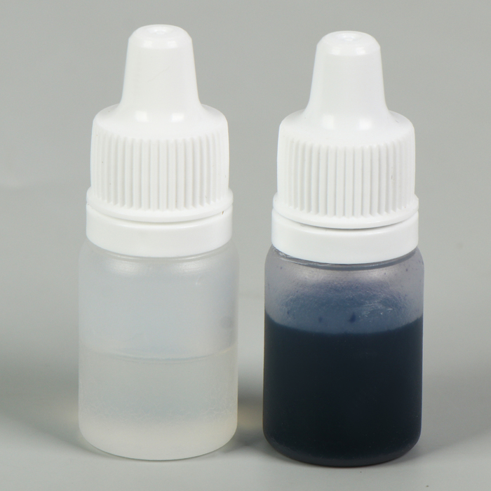 - В другой — морскую соль, 45 капель красителя и 40 капель отдушки, смесь перемешайте.