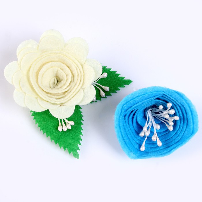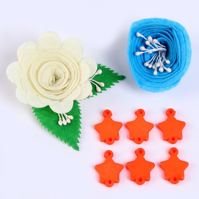 Набор из фетровых цветов с пластиковыми бусинами — это фигурный декор, который можно применить в различных сферах творчества.