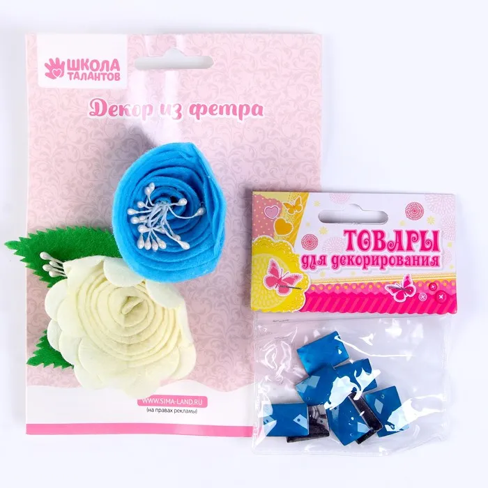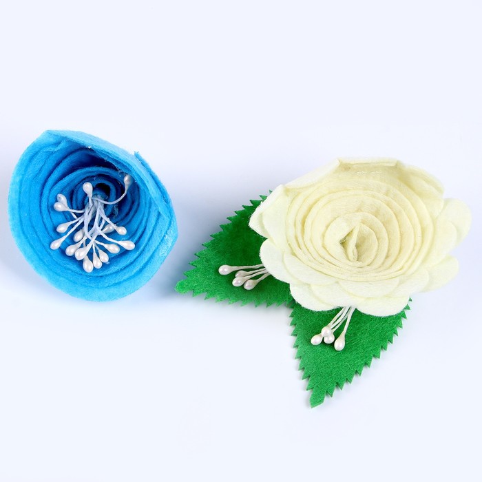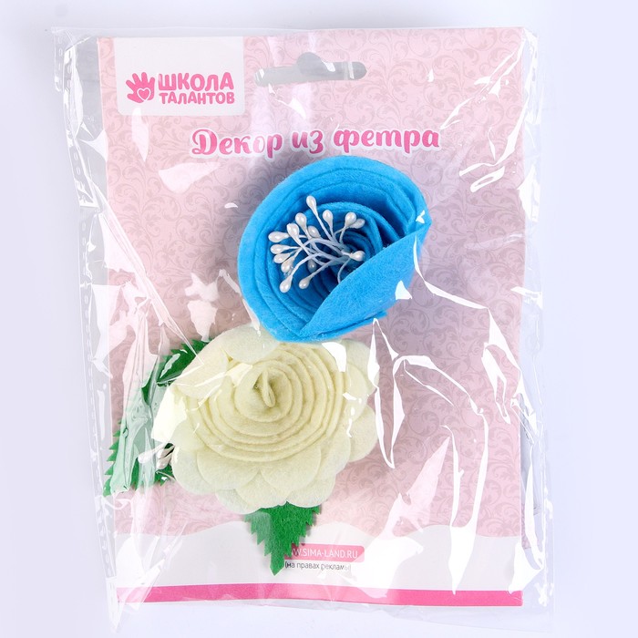 Набор из фетровых цветов с пластиковыми бусинами — это фигурный декор, который можно применить в различных сферах творчества.