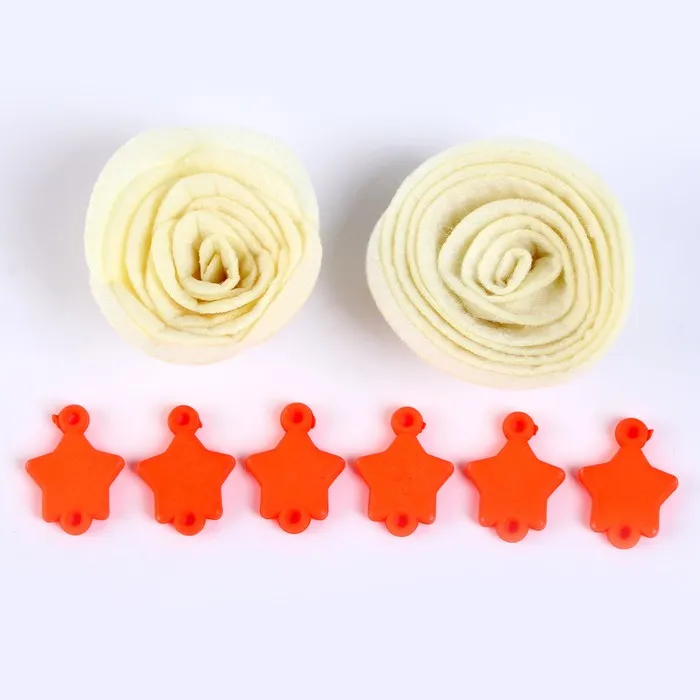 Набор из фетровых цветов с пластиковыми бусинами — это фигурный декор, который можно применить в различных сферах творчества.