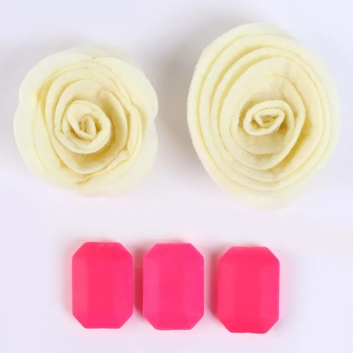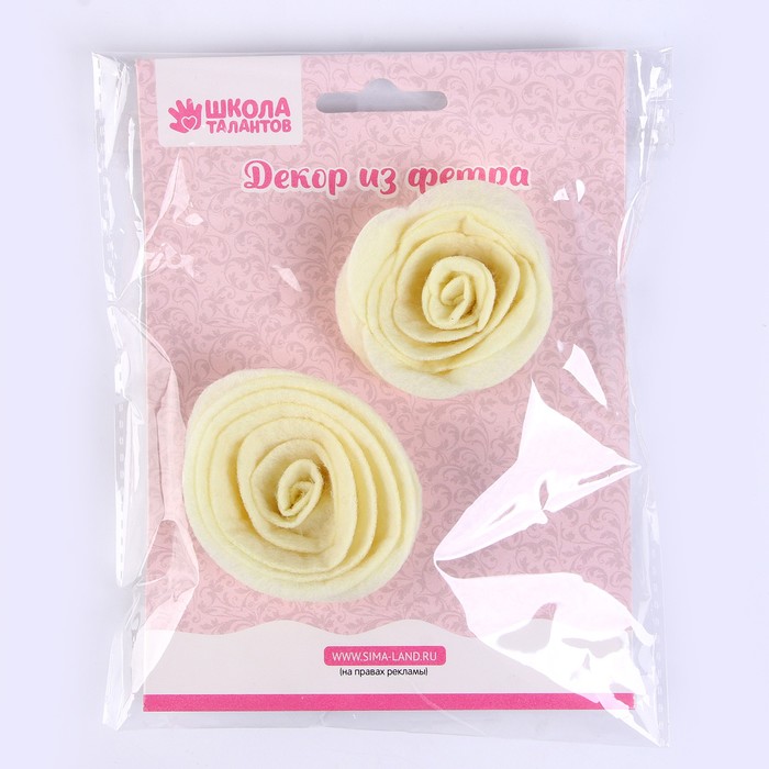 Набор из фетровых цветов с пластиковыми бусинами — это фигурный декор, который можно применить в различных сферах творчества.