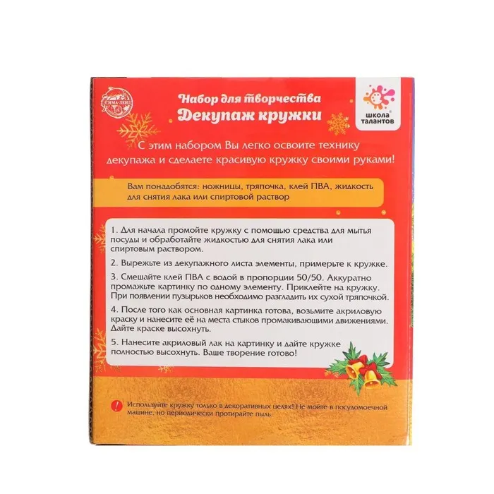 Набор для творчества «Декупаж кружки: новый год» — Характеристики