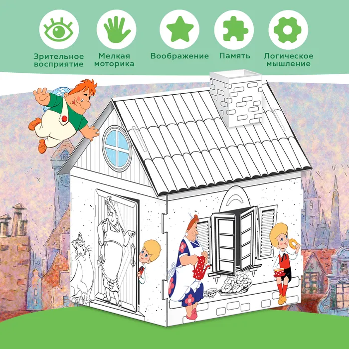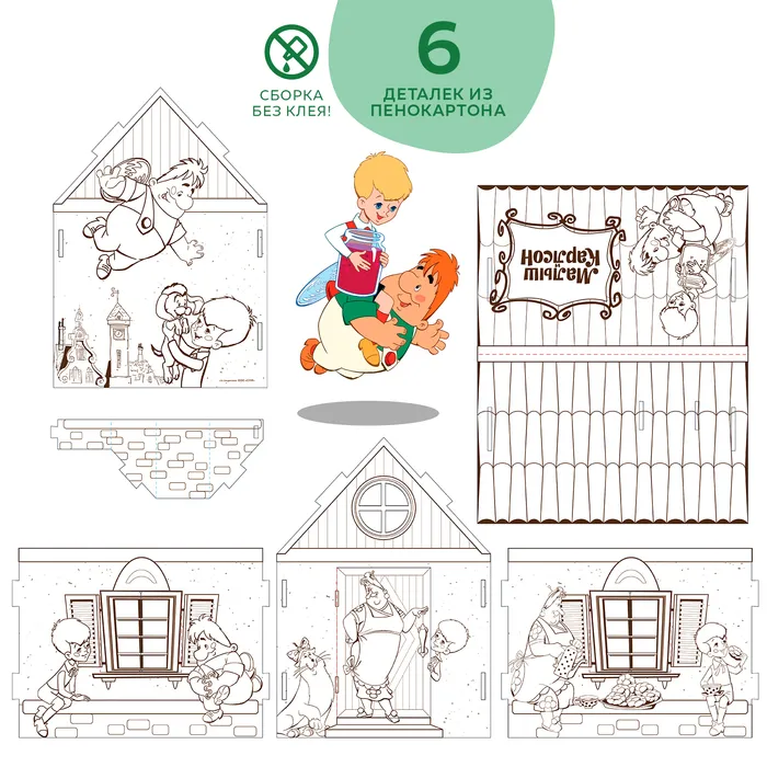 Набор для творчества «Домик-раскраска: Малыш и Карслон», из картона, 6 деталей, 5 фломастеров — Характеристики