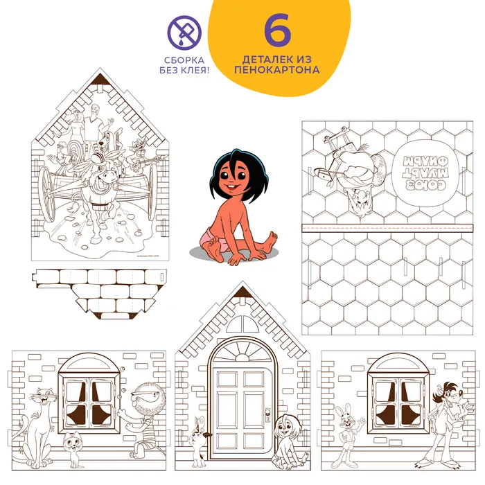Набор для творчества «Домик-раскраска: Золотая коллекция», из картона, 6 деталей, 5 фломастеров — Характеристики