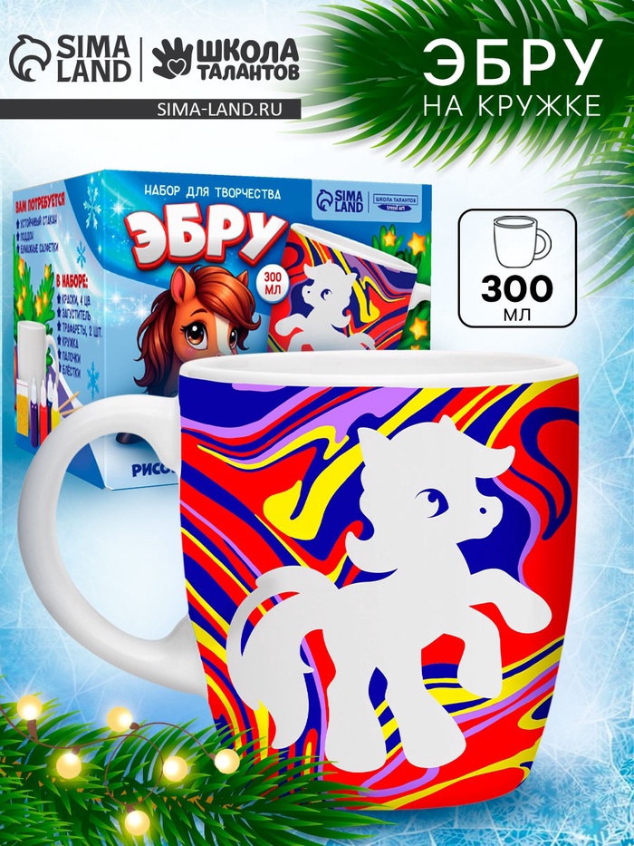 Набор для творчества эбру, создай свою кружку «Снежная лошадка», 300 мл — Характеристики