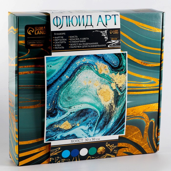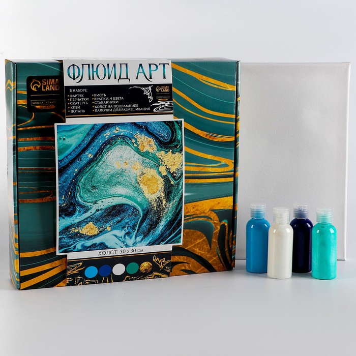 Набор для творчества. Флюид арт. Рисование акрилом на холсте с поталью «Морской бриз» — Характеристики