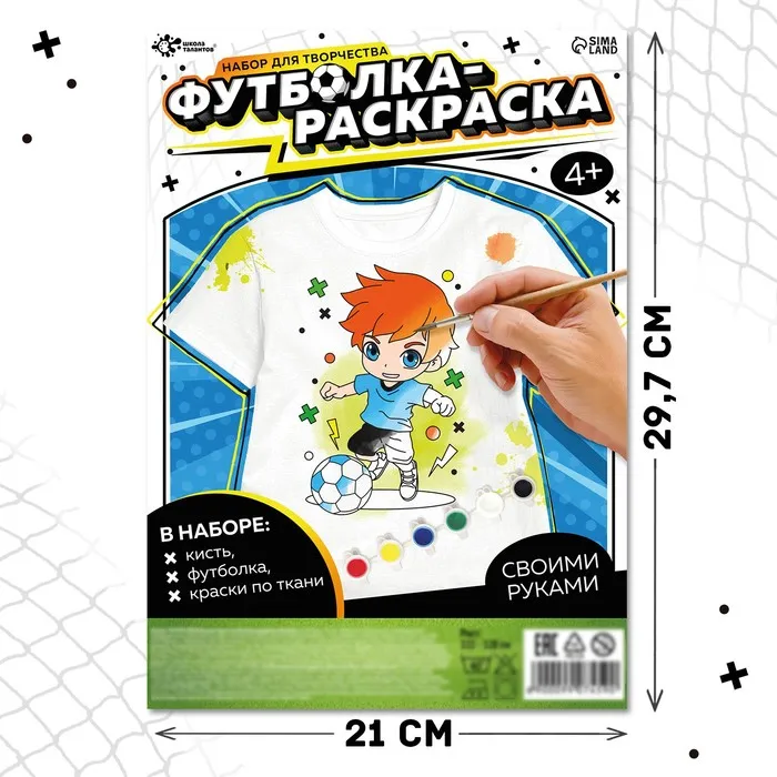 Футболка-раскраска «Футболист» станет отличным подарком для юного художника. Этот комплект соединяет творческий процесс с возможностью создать уникальную вещь — футболку, которую ребенок сможет носить с гордостью.