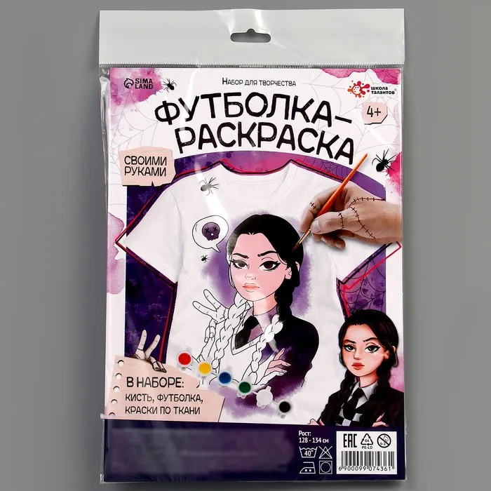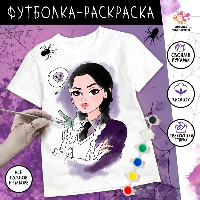 Набор для творчества футболка-раскраска «Мрачные истории», размер 128-134 см — Характеристики