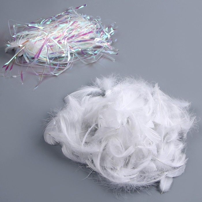 Набор для творчества и декора «Перья белые + наполнитель», цвет серебро