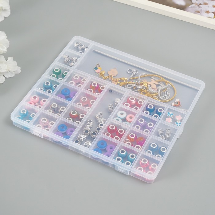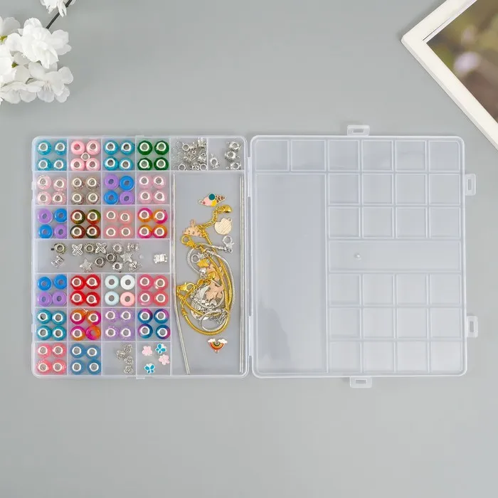 - Разнообразие материалов: в коробке вы найдете бусины различных форм, цветов и текстур, что дает возможность реализовать самые смелые идеи.