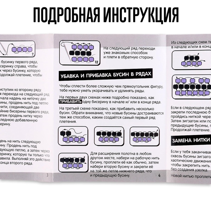 - На третьей схеме показано, как прибавить несколько бусин. Обратите внимание, что новые бусины достраиваются тем же способом, каким создаётся самый первый ряд плетения.