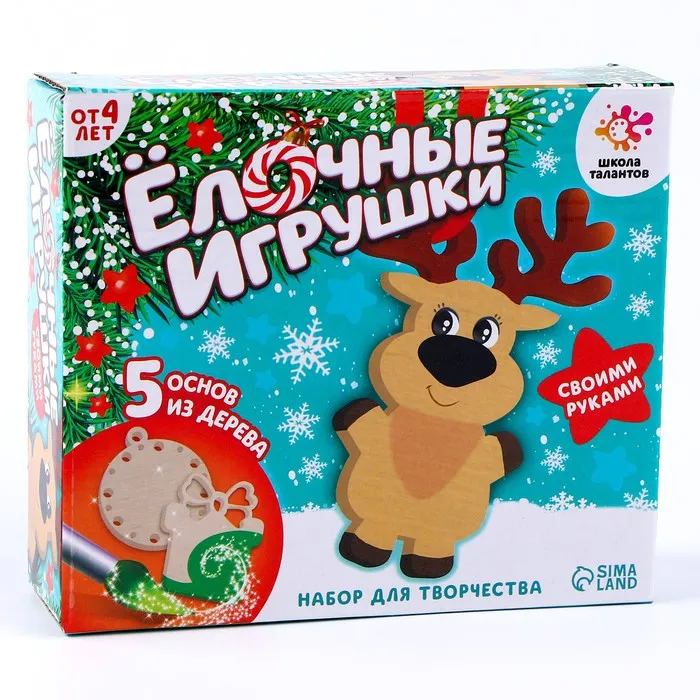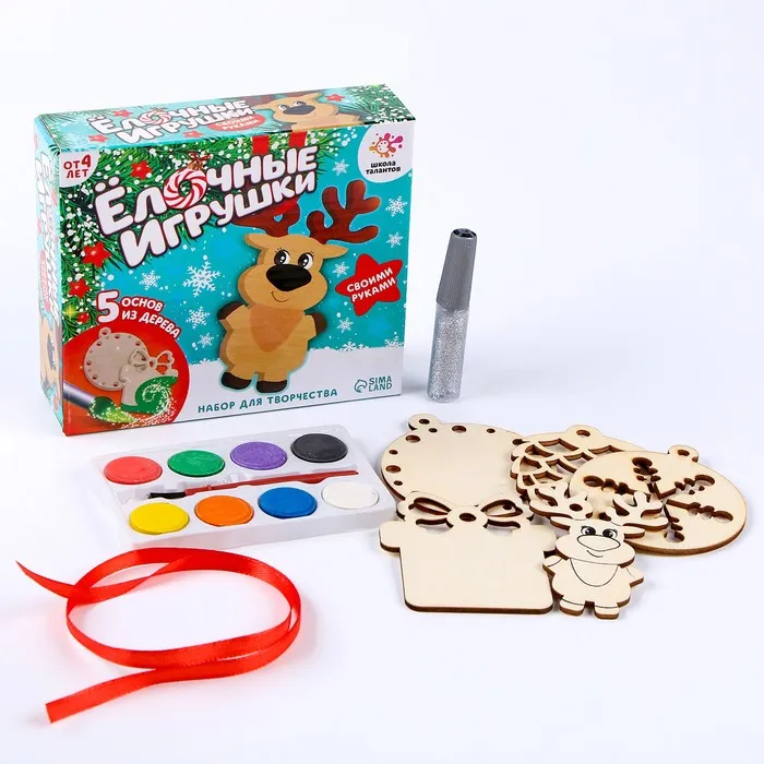 Набор для творчества «Ёлочные игрушки из дерева. Сделай сам» (олень, подарок, шарик) — Характеристики