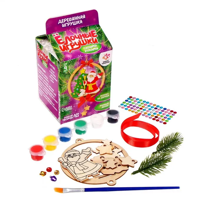 С набором для творчества ребёнок самостоятельно сделает подвеску на новогоднюю ёлочку и раскрасит её.