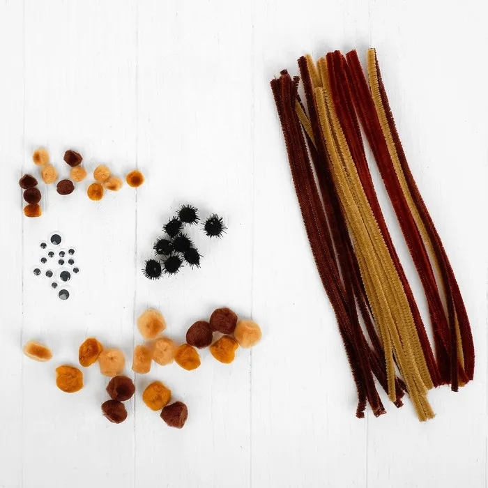 Набор для творчества поможет ребёнку создать пушистую поделку в виде причудливого зверька. Малышу остаётся только придумать, какое животное он будет делать.