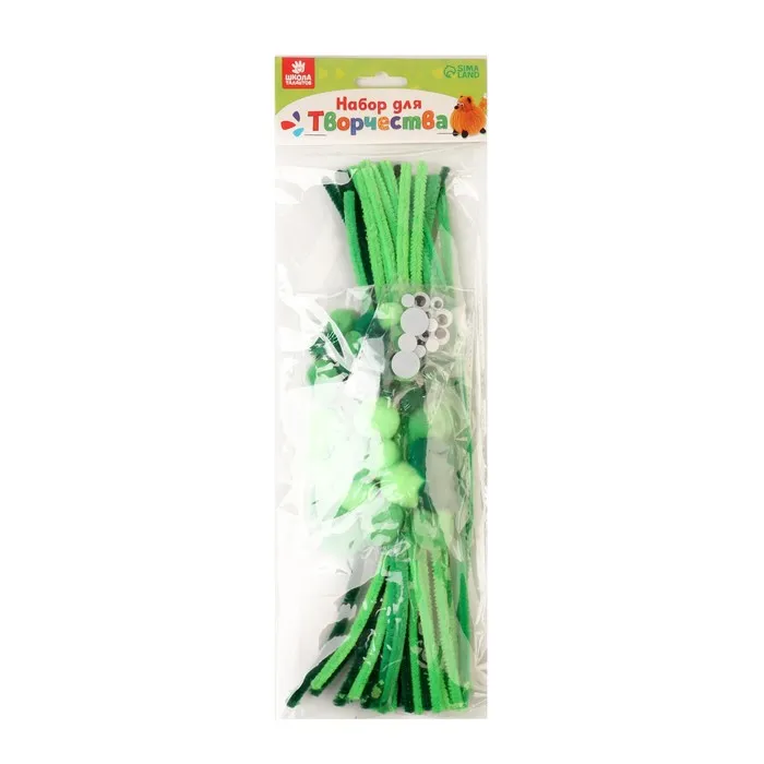 Набор для творчества поможет ребёнку создать пушистую поделку в виде причудливого зверька. Малышу остаётся только придумать, какое животное он будет делать.