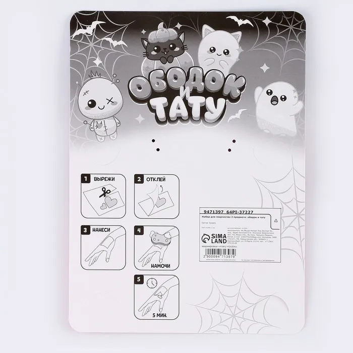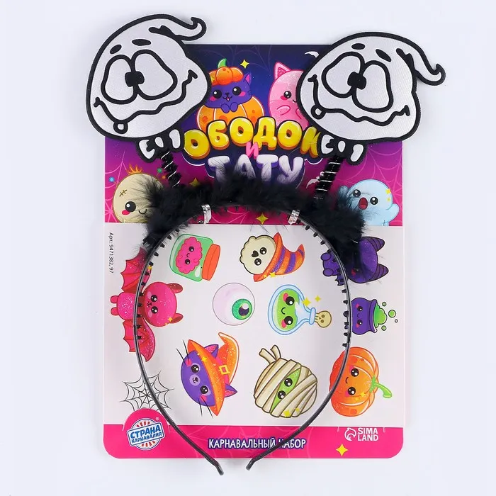 Набор для творчества «Хэллоуин: Милашки», 2 предмета: тату, ободок, тату МИКС — Характеристики