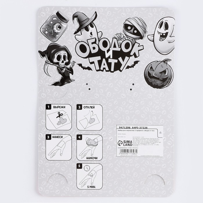 Набор для творчества «Хэллоуин: Страшилки», 2 предмета: тату,ободок, тату МИКС — Характеристики