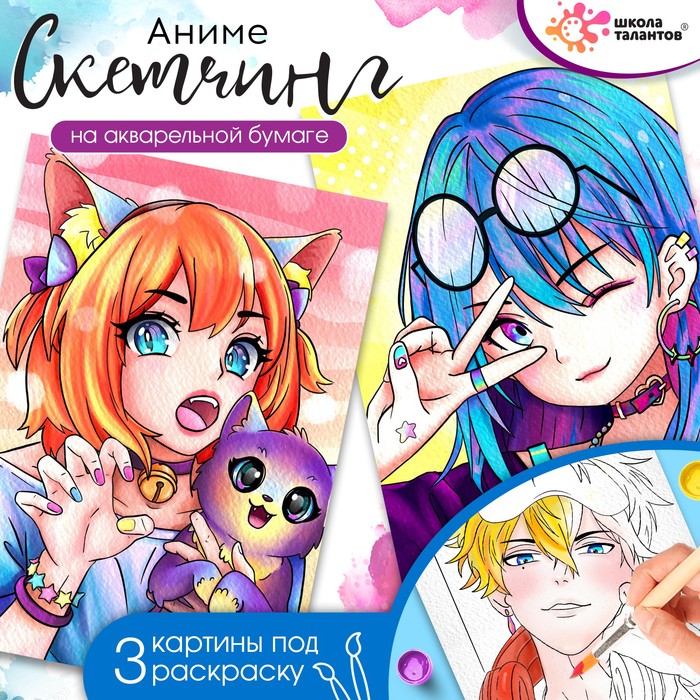 Набор для скетчинга «Девочка и котик», на акварельной бумаге