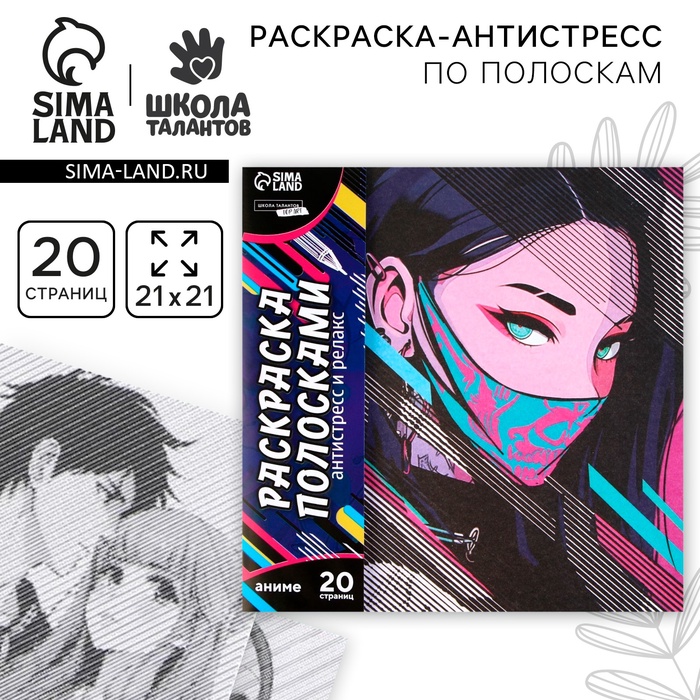 Раскраска-антистресс по полоскам «Девушка в маске», 21 х 21 см