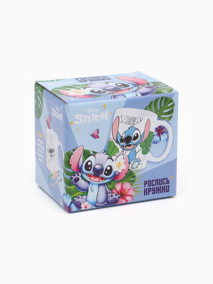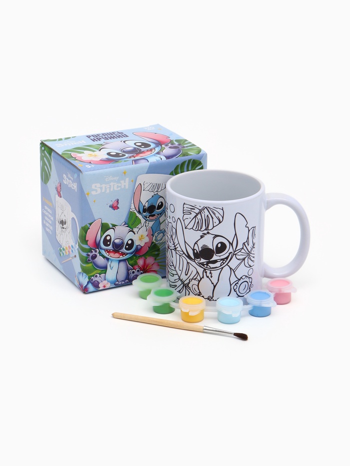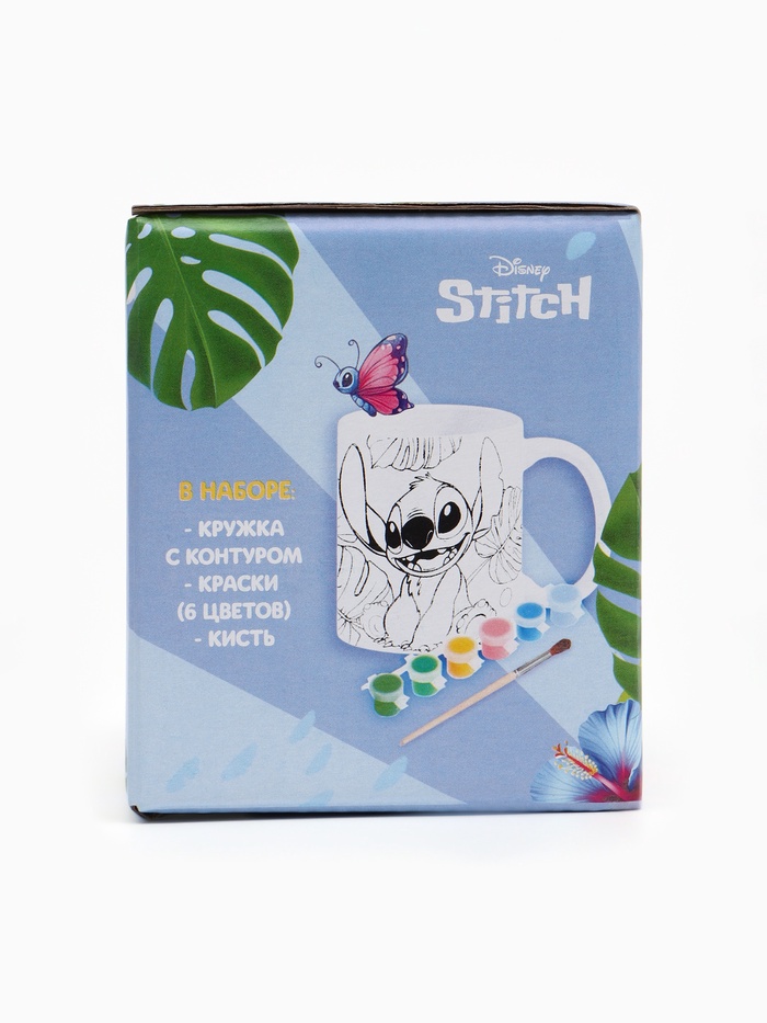 Набор для творчества: кружка под раскраску «Гавайские приключения», Стич — яркое творческое занятие и подарок! Керамическая кружка (320 мл) с контурным рисунком, кистью и красками. Ребёнок раскрашивает кружку по фантазии, затем фиксирует рисунок в духовке — и получает уникальную, долговечную посуду с океанским настроением! Развивает воображение, мелкую моторику и дарит ощущение летнего праздника — даже зимой.