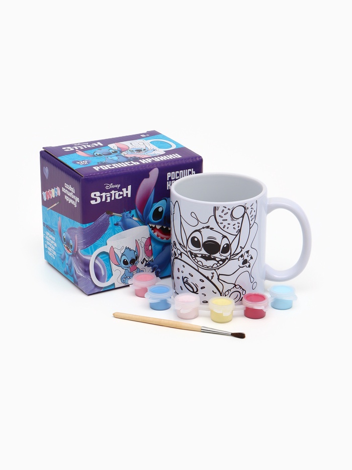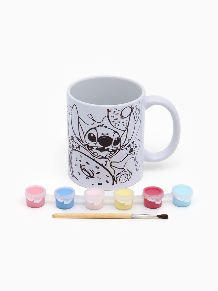 Кружка под раскраску «Сладкое приключение», 320 мл, Стич с мороженым — весёлый творческий подарок для юного фаната! В комплекте: керамическая кружка с контурным рисунком, краски и кисть. Ребёнок раскрашивает по настроению, затем закрепляет рисунок в духовке — получая яркую, персональную кружку для какао, сока или чая! Развивает воображение, мелкую моторику и дарит радость творчества — с дозой стичевского хаоса и сладости.