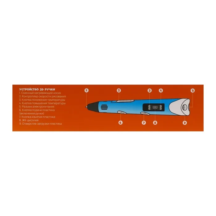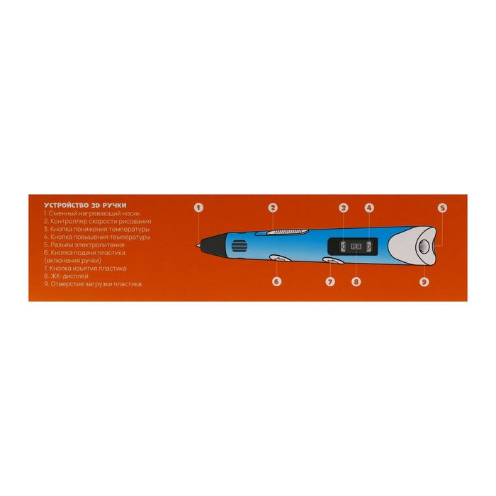 • 3D-ручка с диаметром сопла 0,7 мм и двумя режимами работы;