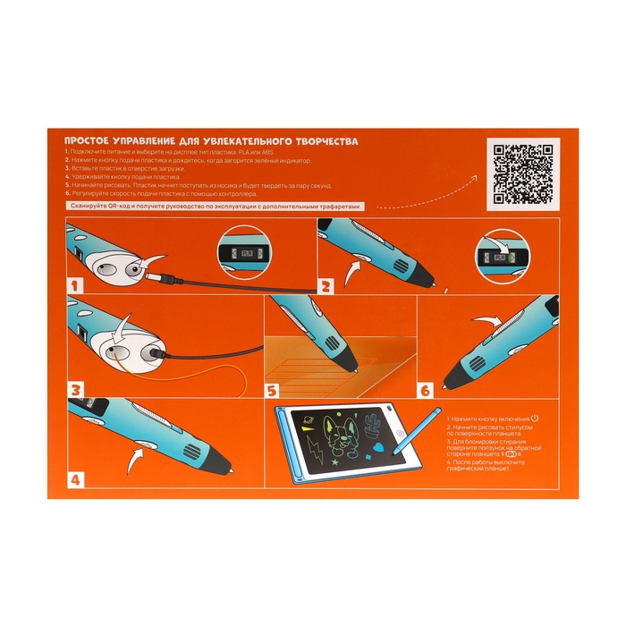 Набор для творчества Luazon, 3D ручка + трафарет + пластик PLA 20 цветов + графический планшет — Характеристики