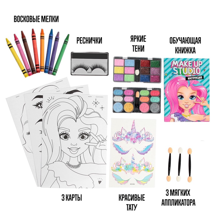 Набор для творчества Make up studio, книжка, тату, тени, 8+ — Характеристики