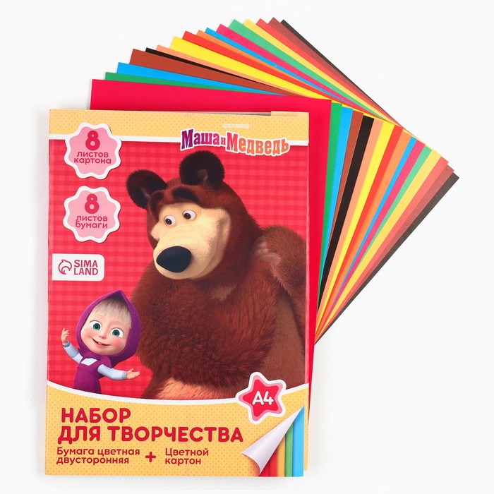 Набор для творчества «Маша и медведь» А4: 8 л цветного одностороннего картона + 8 л цветной двусторонней бумаги — Характеристики