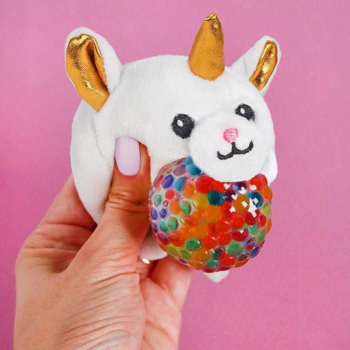 Теперь можно мять игрушку. При этом шарик будет смешно высовываться изо рта и прятаться обратно.