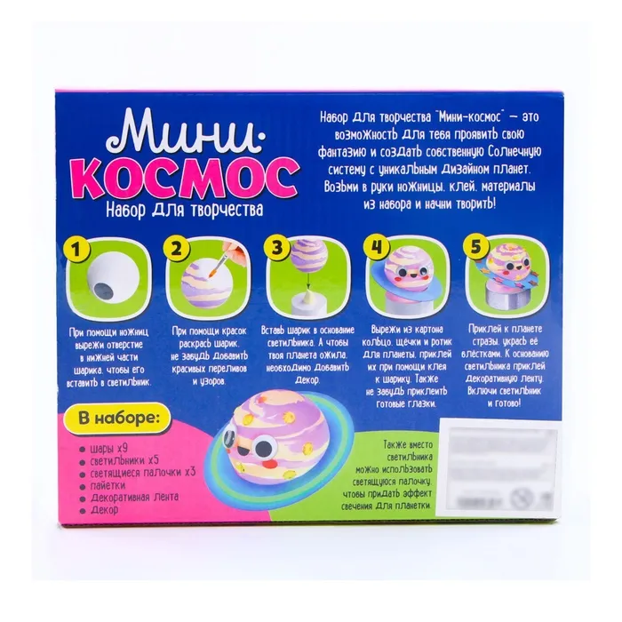 Набор для творчества «Мини-космос. Светящиеся планеты», с декоративными элементами, 9 шаров, 3+ — Характеристики