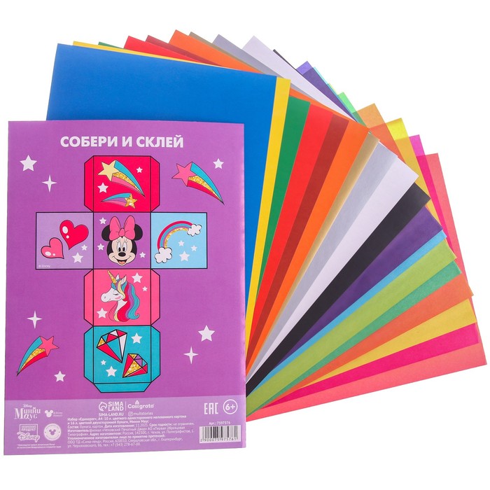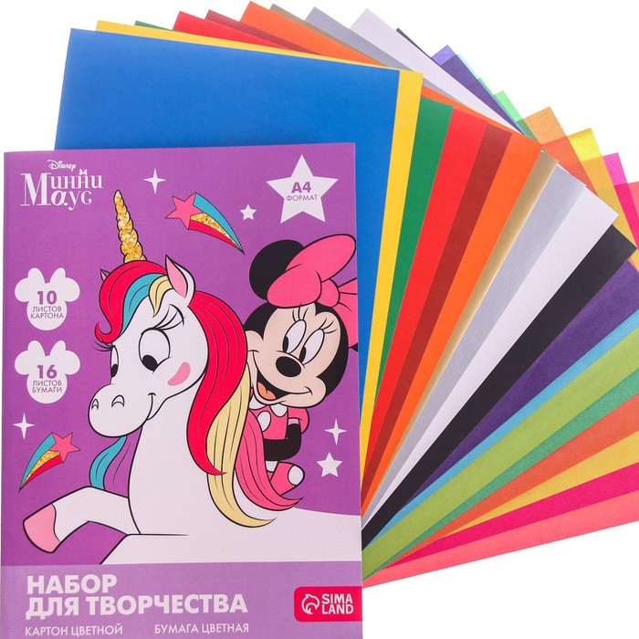Набор для творчества «Минни Маус и единорог» А4, 10 листов цветного одностороннего картона, 16 листов цветной двусторонней бумаги — Характеристики