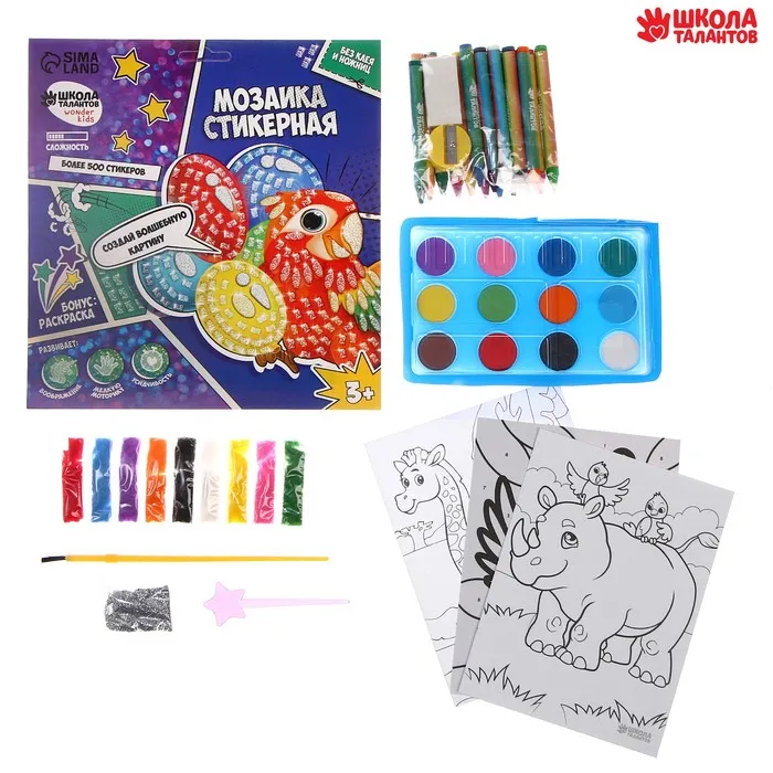 Набор для творчества: набор для рисования и мозаика стикерная «Весёлые животные» — Характеристики