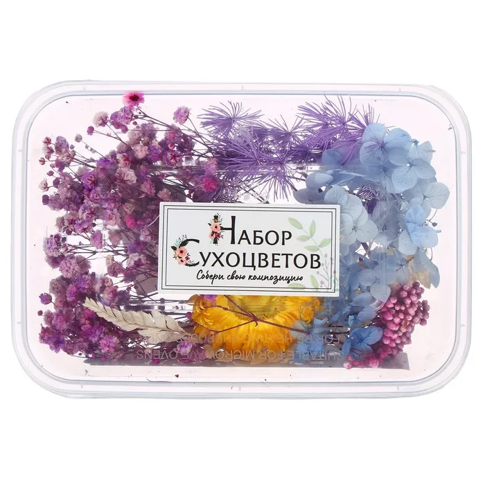 Набор для творчества «Набор сухоцветов», большой, голубой, жёлтый, сиреневый — Характеристики